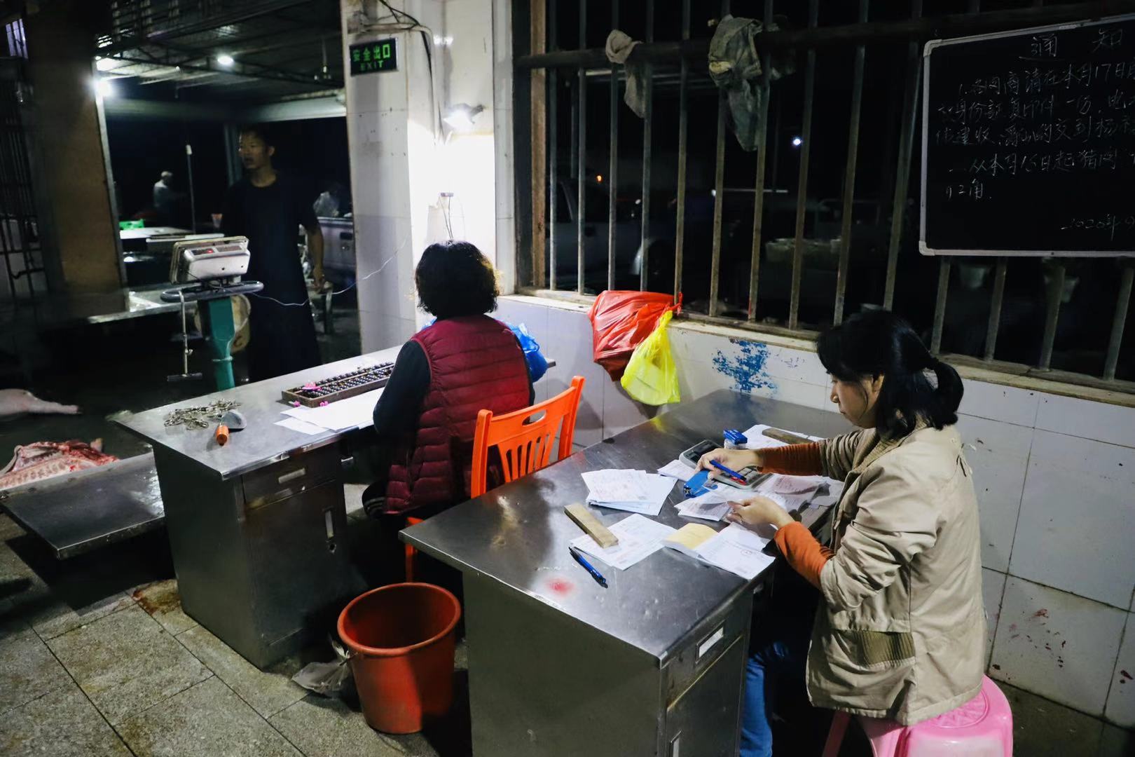 為確保兩鎮居民能在早市買到新鮮的生豬肉品,爵山食品公司的生產線必須趕在每天上午6點前完成電城、爵山、博賀、龍山四家食品公司的生豬屠宰,并將豬肉及時分發運輸到電城、博賀兩鎮的各大菜市場。