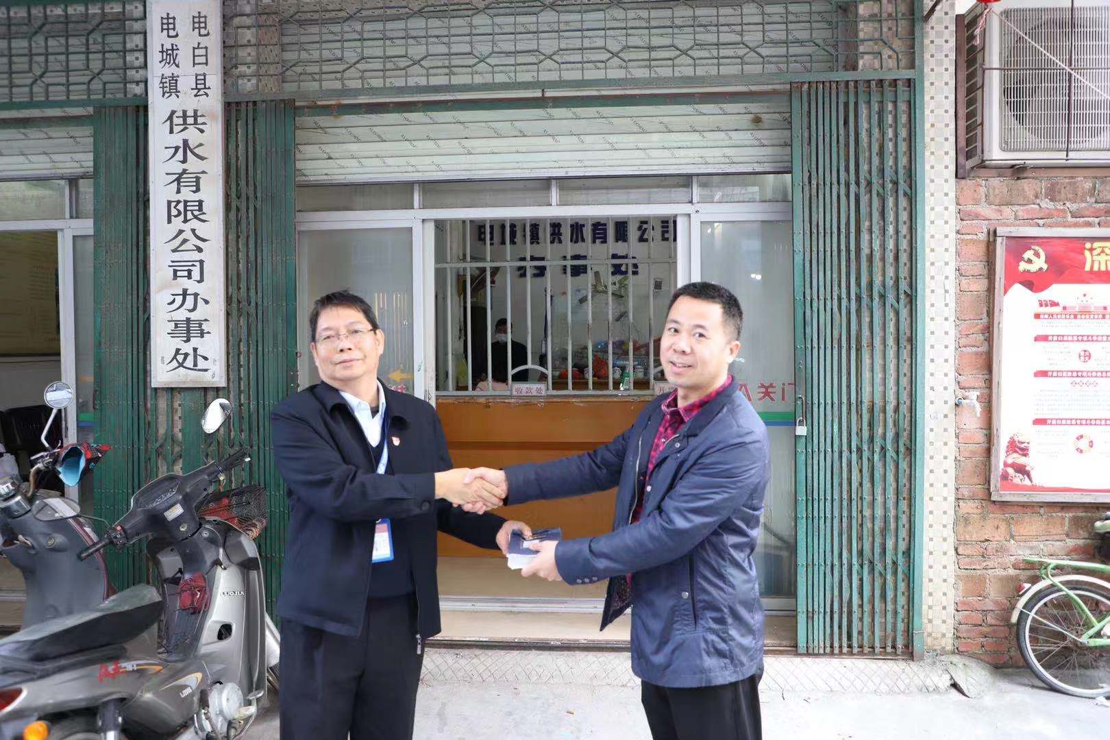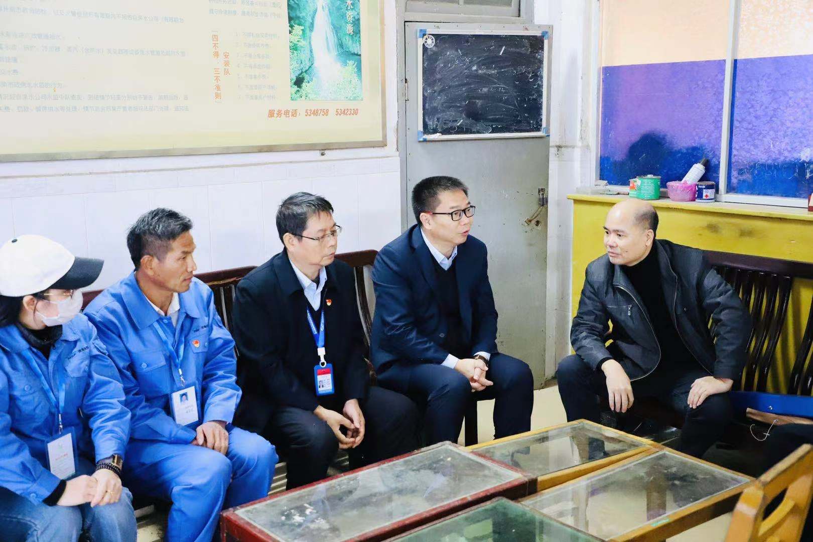 移交儀式結(jié)束后,黃遠(yuǎn)維一行前往位于電城鎮(zhèn)中心的電城水廠供水辦事處,了解電城居民日常繳納水費(fèi)、報(bào)裝維修等具體工作情況。
