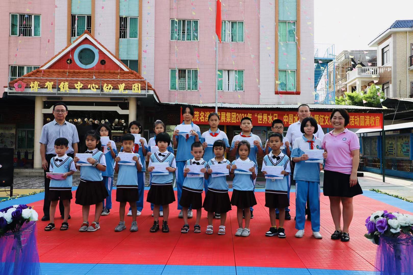 5月20日下午,由茂名濱海發展集團舉辦的2021年“世界水日、中國水周”主題征文比賽頒獎活動在國資公司下屬單位博賀中心幼兒園舉行。集團總裁趙越;電城鎮中心小學領導黃康俊;博賀中心幼兒園園長梁志萍參加并出席活動。