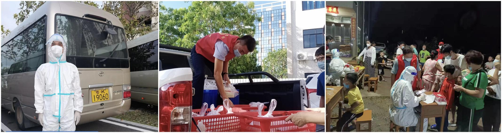 (右:集團(tuán)下屬爵山食品公司黎澤強(qiáng)同志通宵協(xié)助醫(yī)護(hù)人員做好村民核酸檢測(cè)工作)