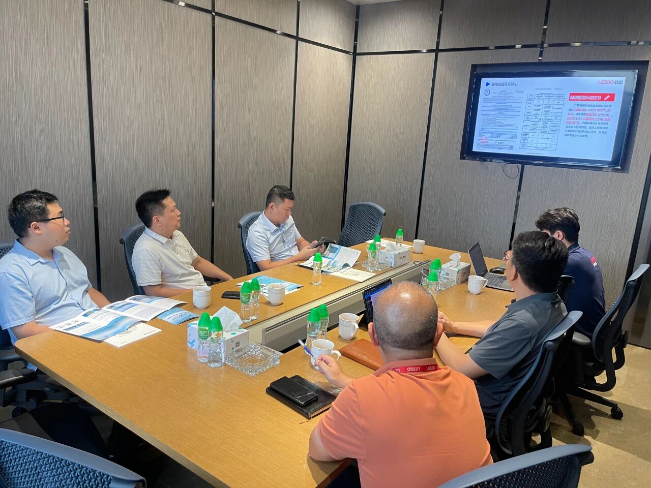 在聯塑精銦相關負責人的陪同下,集團調研組參觀了聯塑集團文化展廳及智能化生產車間。通過詳實的講解與實地觀摩,調研組深入了解了其在智能化制造、海洋工程裝備、高性能材料研發和精密加工等領域的技術成果與生產管理體系,為集團后續相關產業規劃提供了寶貴的參考。在隨后舉行的專題座談會上,集團方面介紹了茂名市在發展現代化海洋牧場方面所具有的區位優勢、資源基礎及總體規劃,并表示此次前來旨在學習行業領先企業在海洋裝備制造方面的前沿技術和成熟經驗。聯塑精銦公司分享了其在海洋工程結構件、耐腐蝕材料及智能化控制系統等領域的技術解決方案與應用實例。雙方就現代化海洋牧場高端裝備的技術發展趨勢、應用場景等議題進行了廣泛探討。