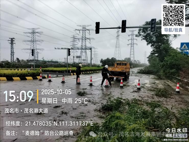 今年第21號臺風“麥德姆”強勢來襲,為茂名濱海新區帶來嚴峻風雨考驗。在濱海新區的部署和茂名濱海發展集團統一指揮下,集團道路養護中心搶險隊(以下簡稱養護中心搶險隊)迅速響應、晝夜堅守,在防汛防風一線構筑起堅實的“道路安全屏障”,充分彰顯了高效的應急處置能力。