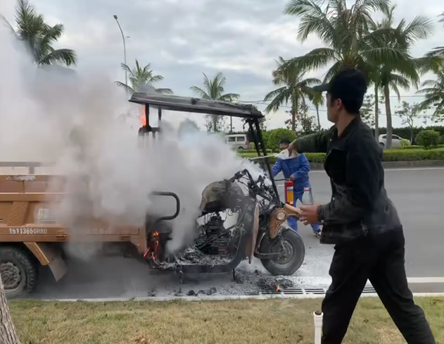 2025年11月20日中午,位于電城水質(zhì)凈化廠斜對面的博賀灣大道上,一輛三輪車突發(fā)火情,火勢迅速蔓延,現(xiàn)場情況十分危急。