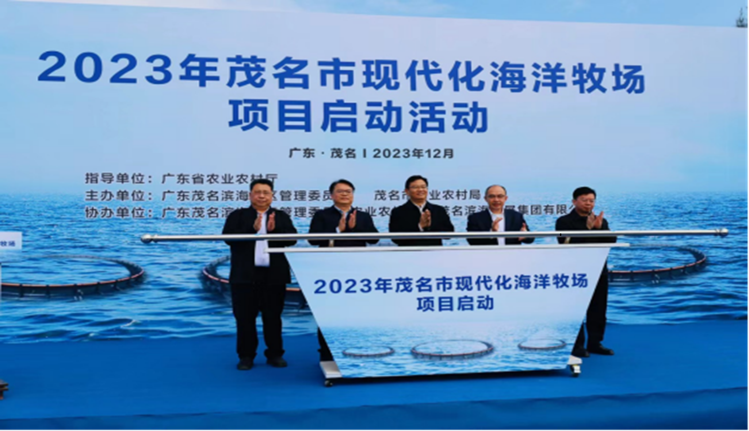 濱海發展集團助力茂名現代化海洋牧場項目啟動,48個網箱陸續被推向大海